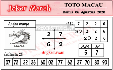 Prediksi Joker Merah Kamis 06 Agustus 2020